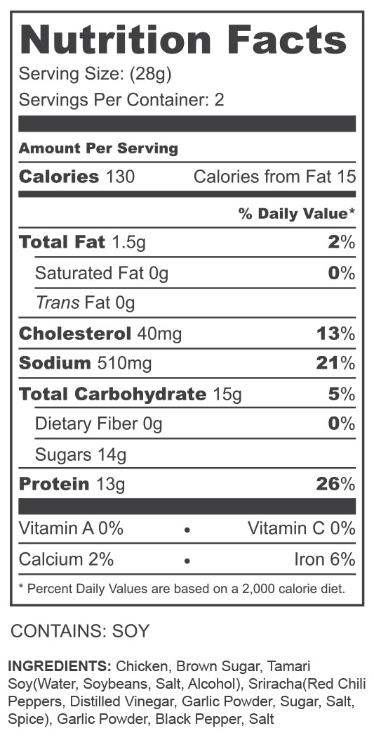 Buffalo Chicken is bold, zesty, and packed with flavor — tender cuts of premium chicken marinated in a classic buffalo-style sauce with a smooth, savory finish and just the right touch of heat. It’s that game-day energy, wing-night craving, and bar-food favorite — reimagined into a high-protein, gluten-free snack you can take anywhere.